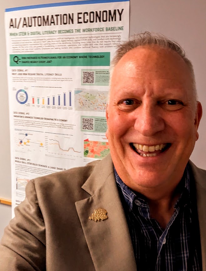At Penn State CSATS, we are dedicated to exploring the diverse applications of artificial intelligence with purpose, precision and a human-centered lens. Whether it’s integrating AI in K-12 education, advancing workforce development, or fostering innovation through collaboration across Penn State’s engineering and STEM initiatives, we are committed to understanding the subtleties of AI implementation. As an active member of Penn State's AI Hub, we participate in various AI policy and advisory committees, and we actively engage with the Commonwealth’s networks in AI, robotics, and technology.